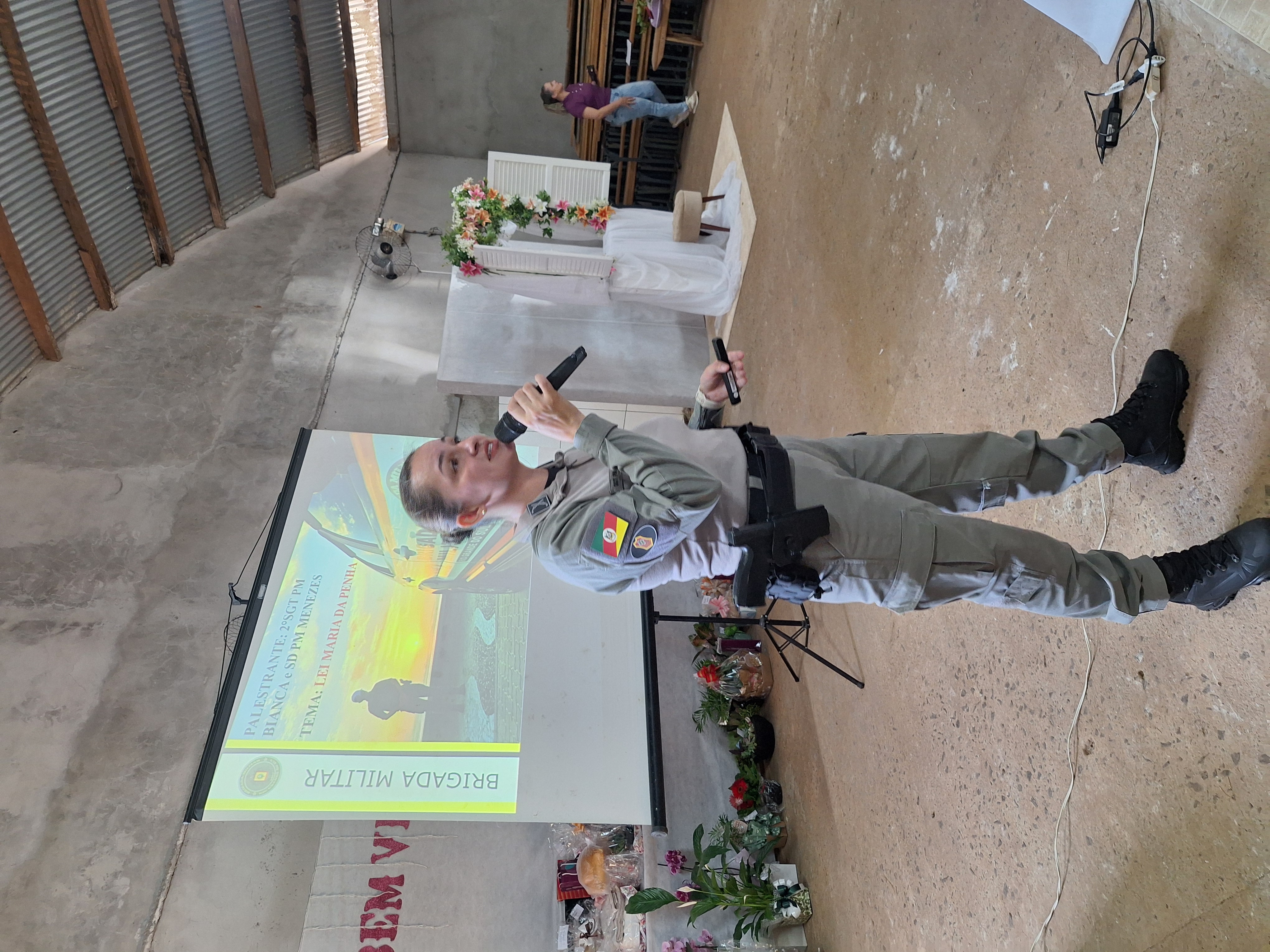 Na parte da manhã, após a fala das autoridades, aconteceu a palestra ministrada pela Sargento Bianca, comandante do Pelotão de Rodeio Bonito, que abordou o tema da violência doméstica. A atividade teve como objetivo orientar e conscientizar o público feminino, tratando sobre a identificação de situações de risco, os mecanismos de proteção e as garantias previstas em lei. Também foram destacados os principais canais de denúncia e a importância da rede de apoio às vítimas.